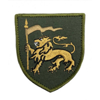 Шеврон на липучках Лев с флагом ВСУ (ЗСУ) 20222155 9704 8х7 см оливковый