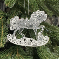 Игрушка на елку Лошадь 19617 12х9 см прозрачная с блестками