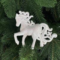Игрушка на елку Лошадь 19699 9х10 см белая с блестками