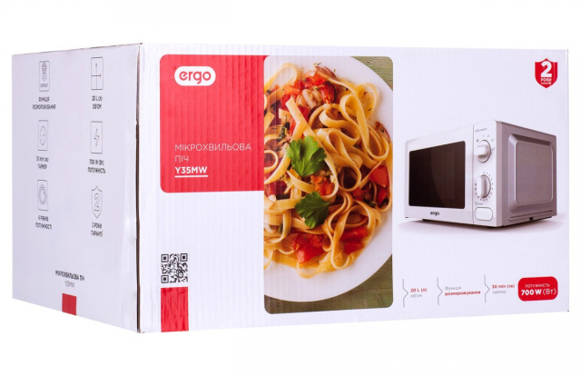 Микроволновая печь Ergo Y35MW – техника, которая отлично подойдет для домашней или офисной кухни. Модель оснащена простым и удобным механическим управлением, а также всем необходимым функционалом для того, чтобы быстро разогреть или приготовить пищу. Микроволновка Ergo Y35MW имеет 6 режимов, которые позволяют готовить простые блюда легко и без лишних усилий, а мощности 700 Вт достаточно, чтобы разморозит продукты и равномерно разогреть пищу. Наличие таймера позволяет запрограммировать время для приготовления или разогрева блюд и заниматься своими делами. Сигнал отключения сообщит о завершении процесса. Внутреннего объема микроволновки 20 л достаточно для того, чтобы разогреть блюдо в посуде стандартного размера, а размер 24,3х44,6х36 см позволяет удобно разместить технику на любой кухне.