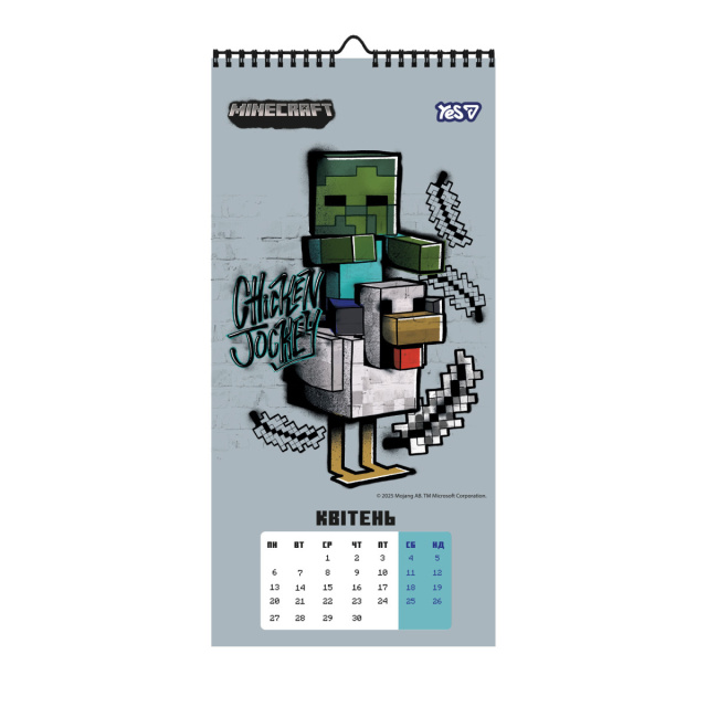 Календарь-постер настенный на 2026 год Yes Minecraft 270278 20х42 см, Хмельницький