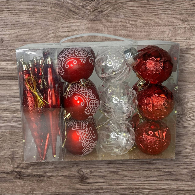 Набор игрушек на елку 19343 26 шт красный, Хмельницький