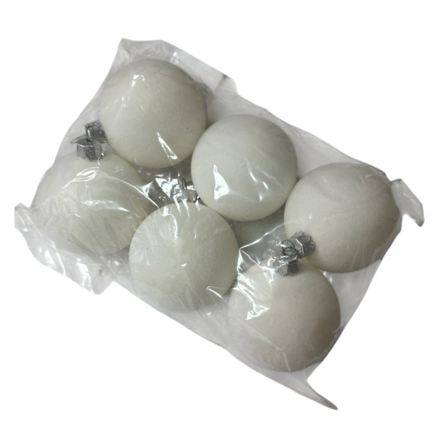 Набор игрушек на елку 19727 6 см 6 шт белый бархат