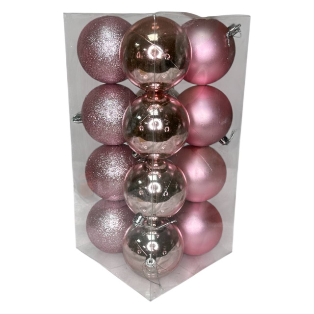 Набор игрушек на елку K14-31 19457 8 см 16 шт розовый, Хмельницький