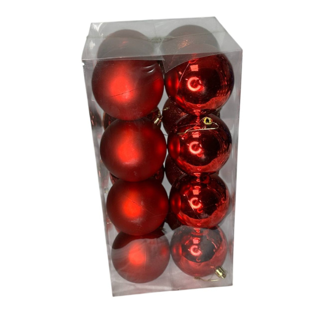 Набор игрушек на елку K19-51 19459 8 см 16 шт красный, Хмельницький
