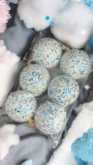 Набор игрушек на елку Битое стекло 14652 8 см 6 шт белый с голубым, Хмельницький