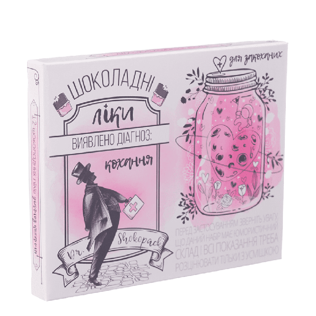 Набор молочного шоколада 12 плиток «Шоколадное лекарство диагноз любви» OK-1202 60 г, Хмельницький