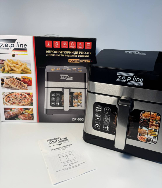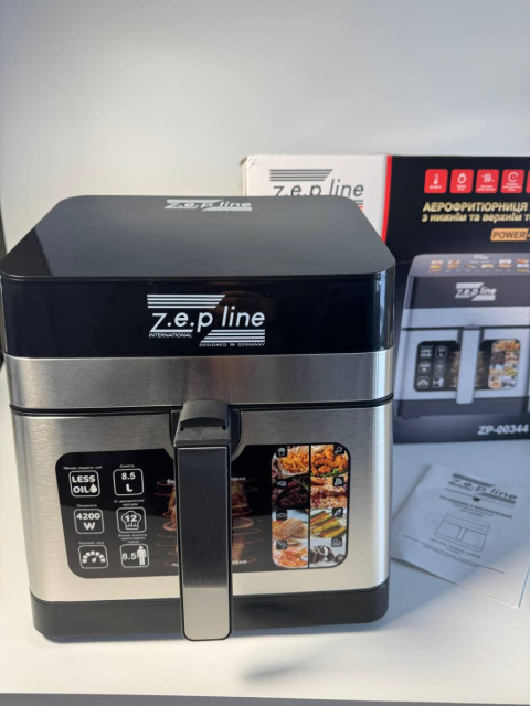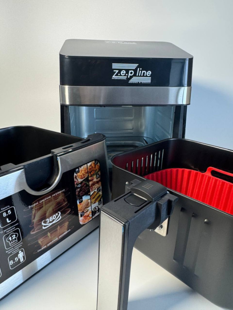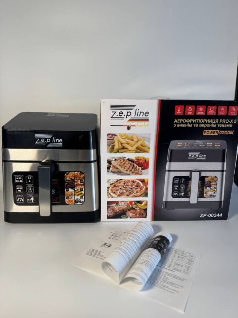 Аэрофритюрница Zepline ZP-00344 – это мощный многофункциональный кухонный прибор нового поколения, сочетающий возможности аэрофрайера, духовки и гриля. Благодаря большому объему, высокой мощности и современным технологиям нагрева, она идеально подходит для ежедневного приготовления здоровых и вкусных блюд для всей семьи. Устройство работает по принципу циркуляции горячего воздуха на 360°, что позволяет готовить пищу с минимальным количеством или полным отсутствием масла. Блюда получаются хрустящими снаружи и сочными внутри, сохраняя натуральный вкус и питательные свойства продуктов.