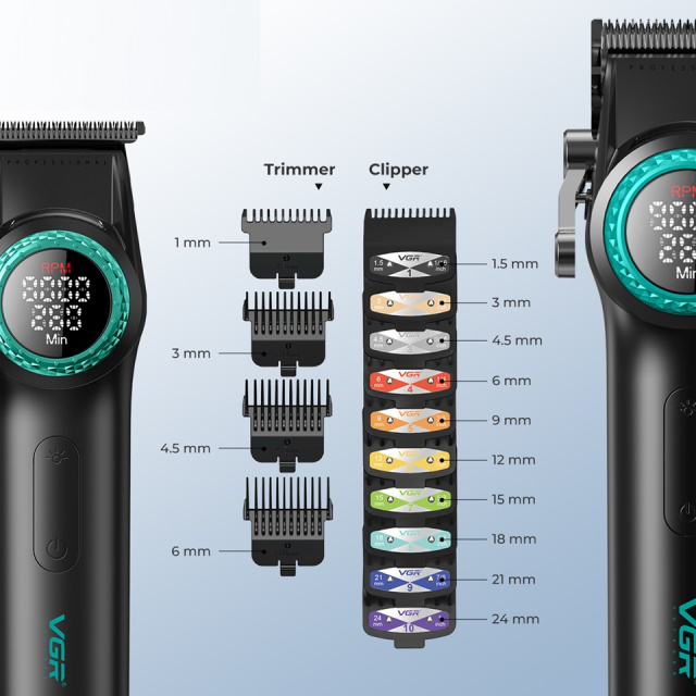 Комплект длят стрижки Vgr Steplerss Комплект длят стрижки Vgr Steplerss представляет собой стильную профессиональную модель, которая оснащена всеми